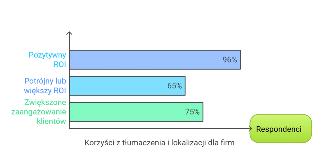96% ankietowanych marketerów w średnich i dużych globalnych firmach odnotowało pozytywny zwrot z inwestycji (ROI) w tłumaczenia i lokalizację.
